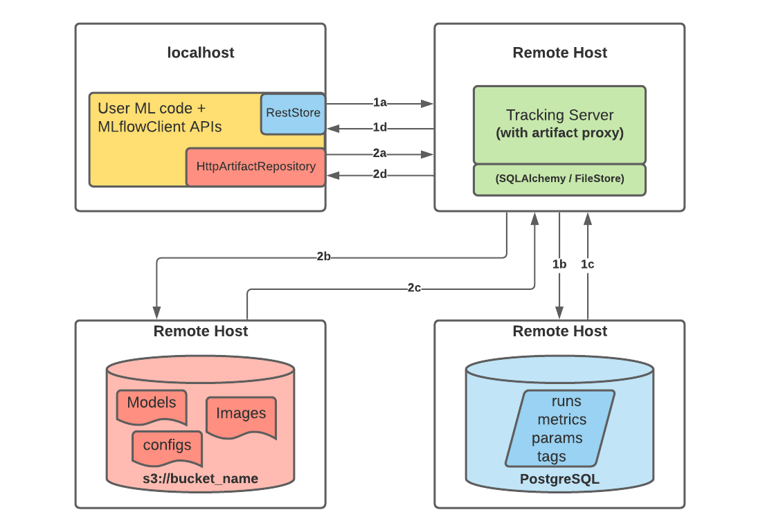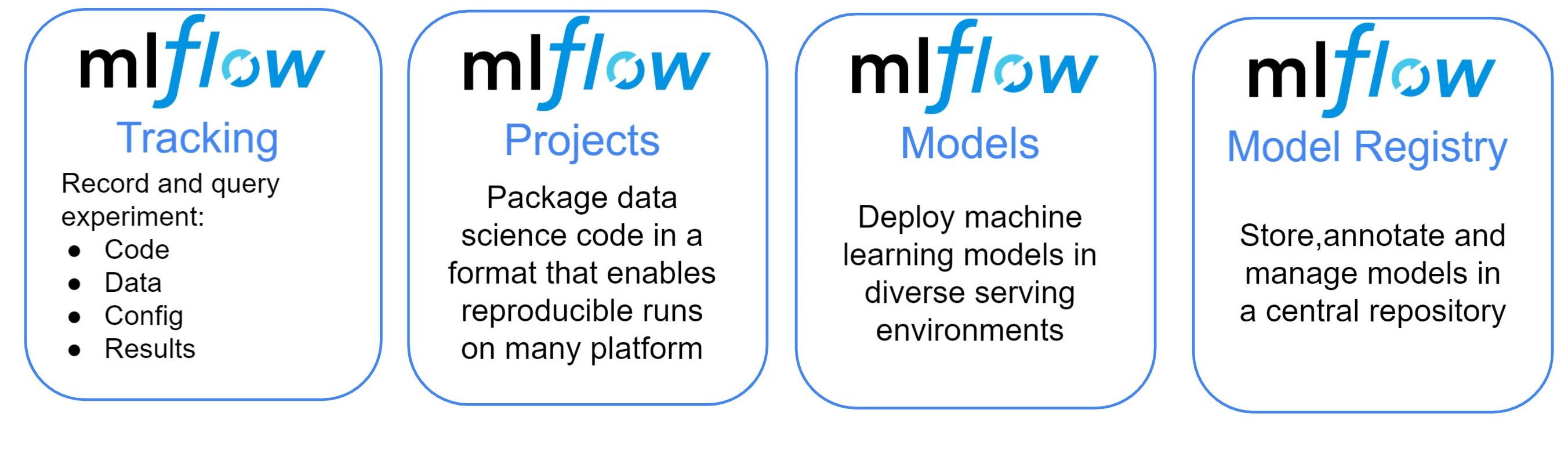 • API, tracking server, backend store, artifact store, setups