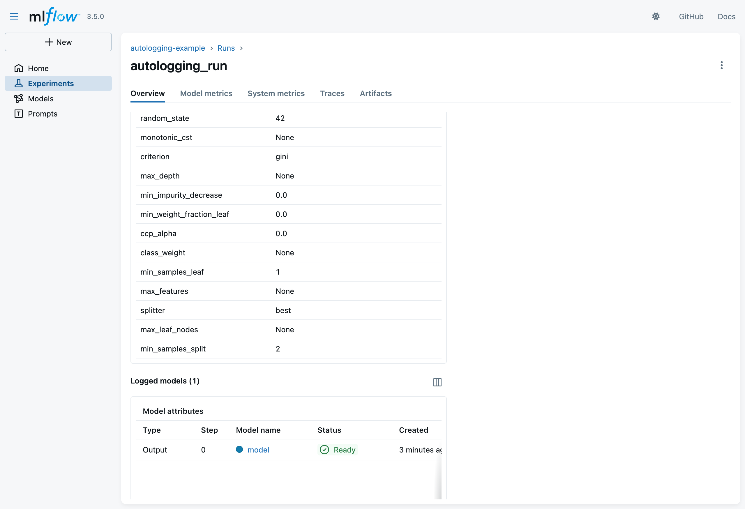 • notice the logged prompts, responses, metrics, etc.
