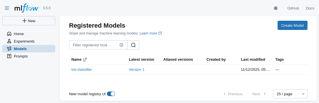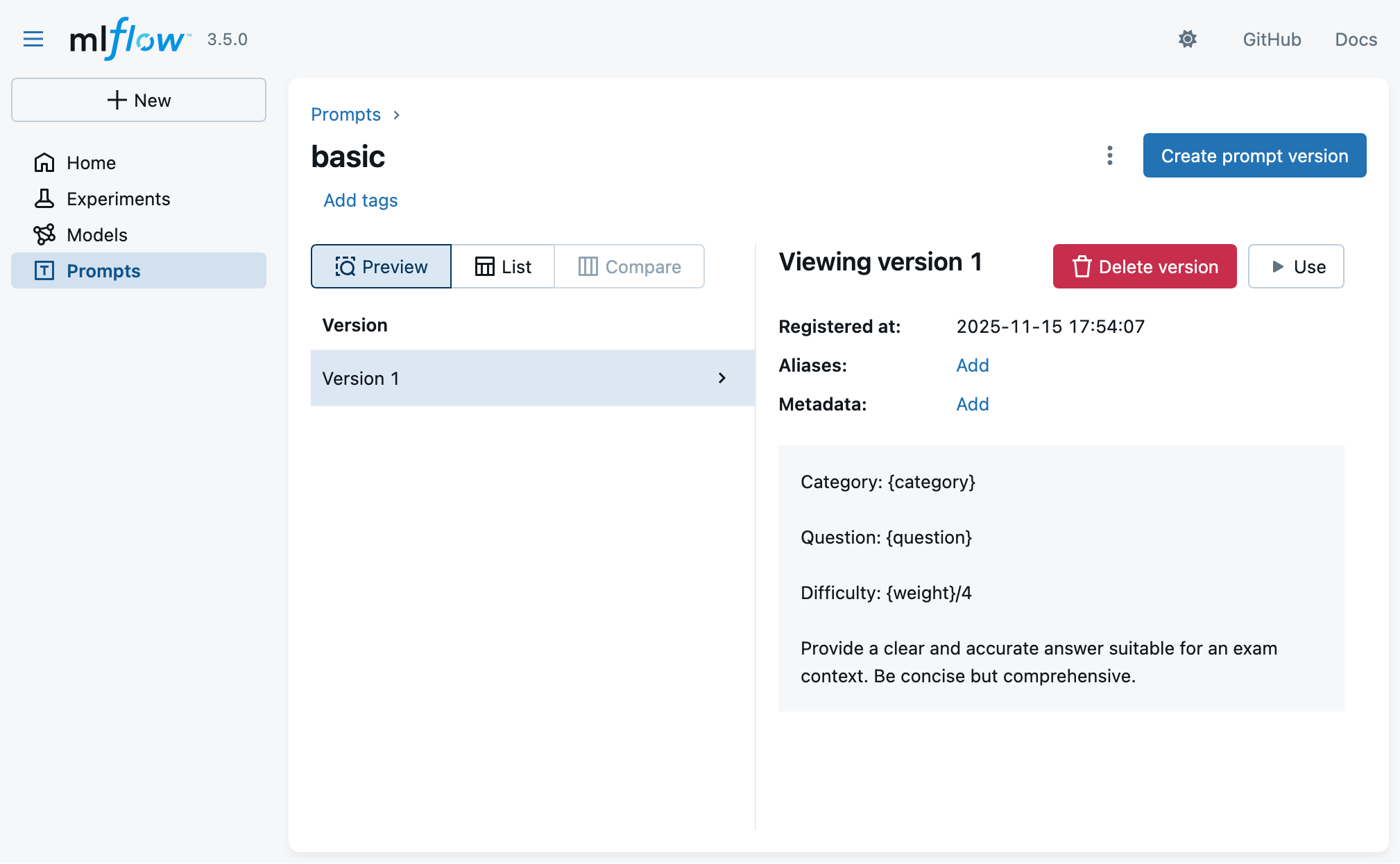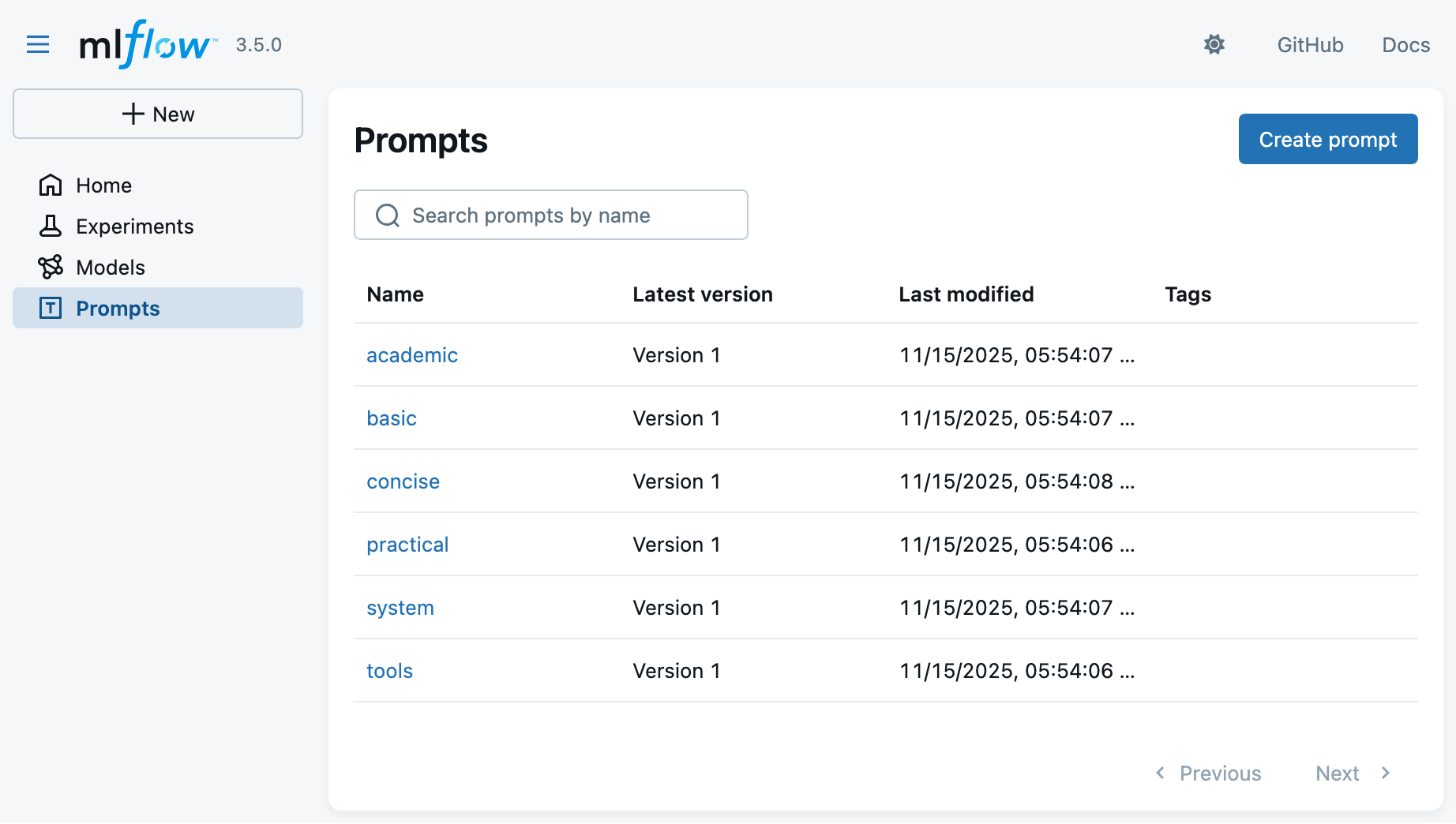 2. Look at the MLflow UI (“Prompts” main section) to see the registered prompts:
