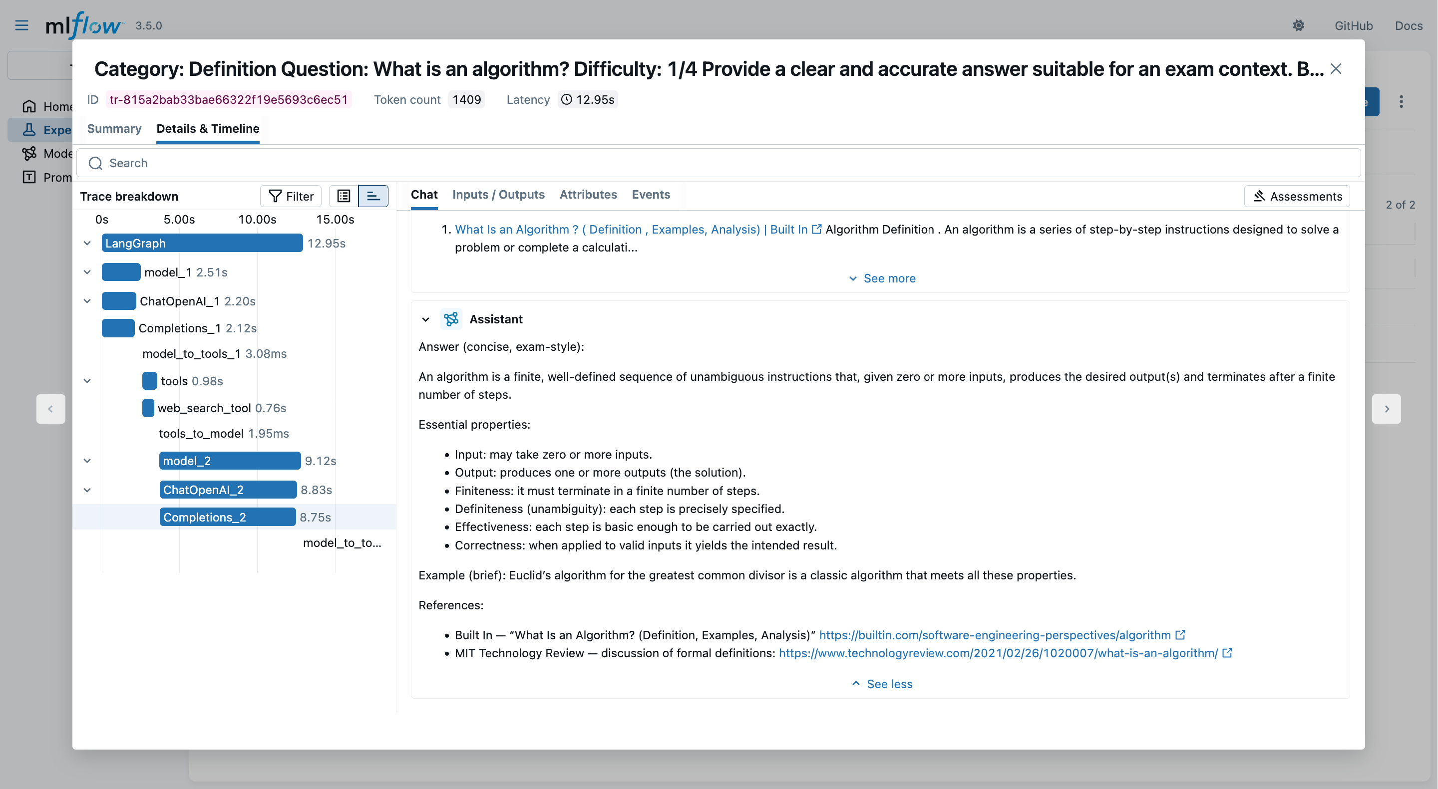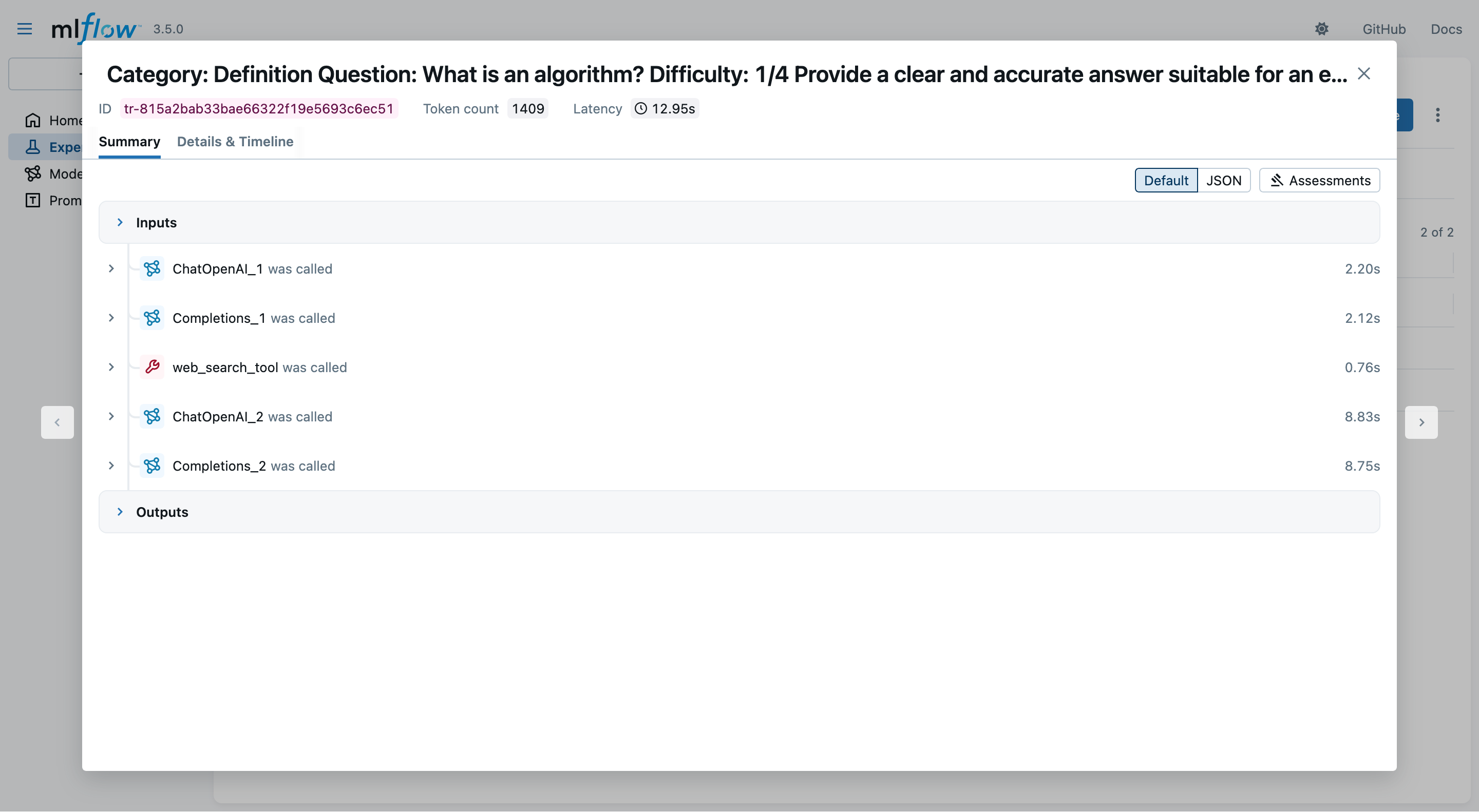 2. In the MLflow UI, you may inspect which and how many tool invocations were performed: